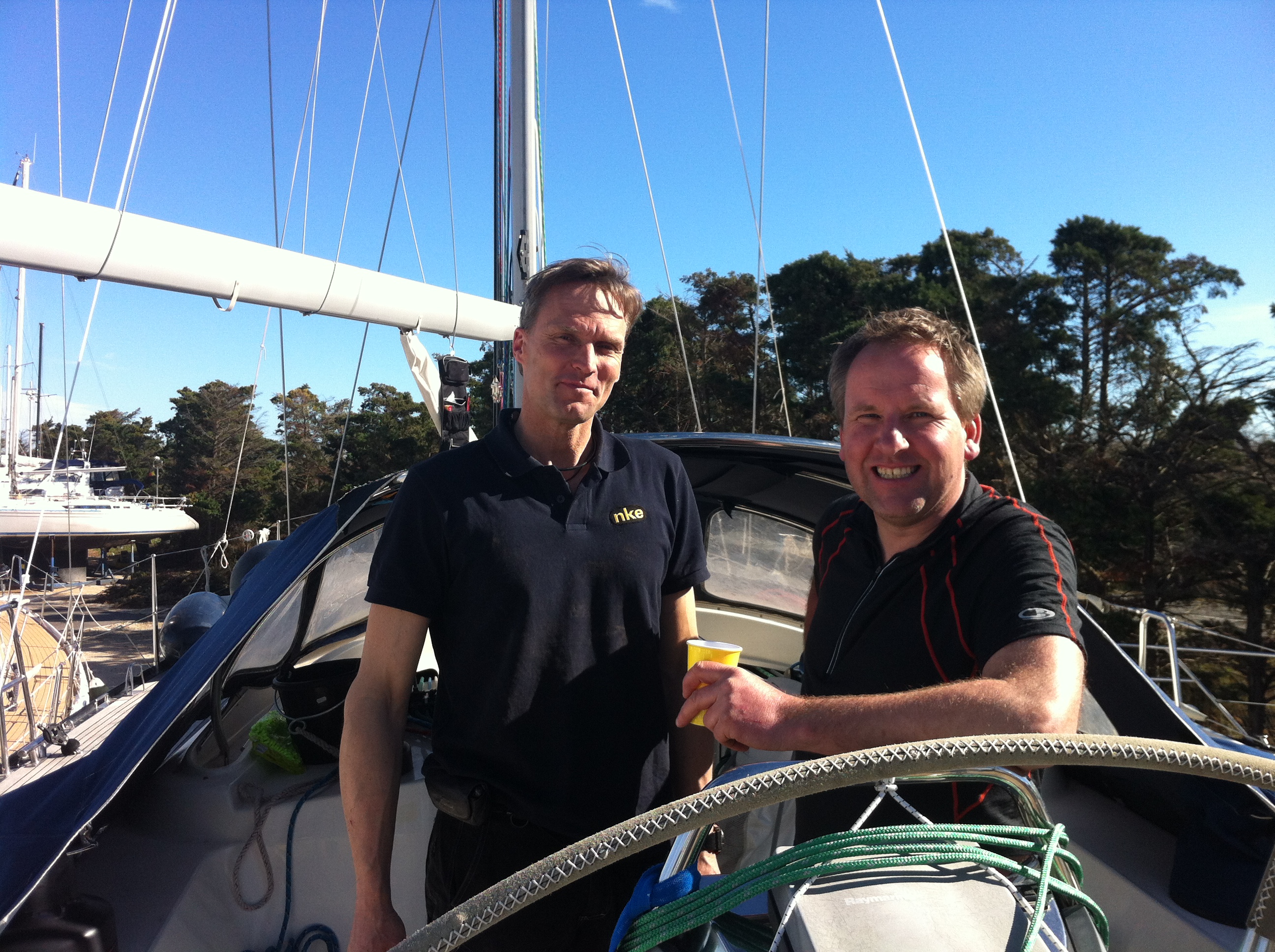 De afgelopen periode hebben Erik van Vuuren en Marc Schmidt een indrukwekkende hoeveelheid verbeteringen en aanpassingen aangebracht op de Xirene. Het schip is nu bijna klaar voor het grote werk, in april gaan we alles testen tijdens een trip met het ARC team. Op de foto Erik en Marc aan boord, genietend van de resultaten.