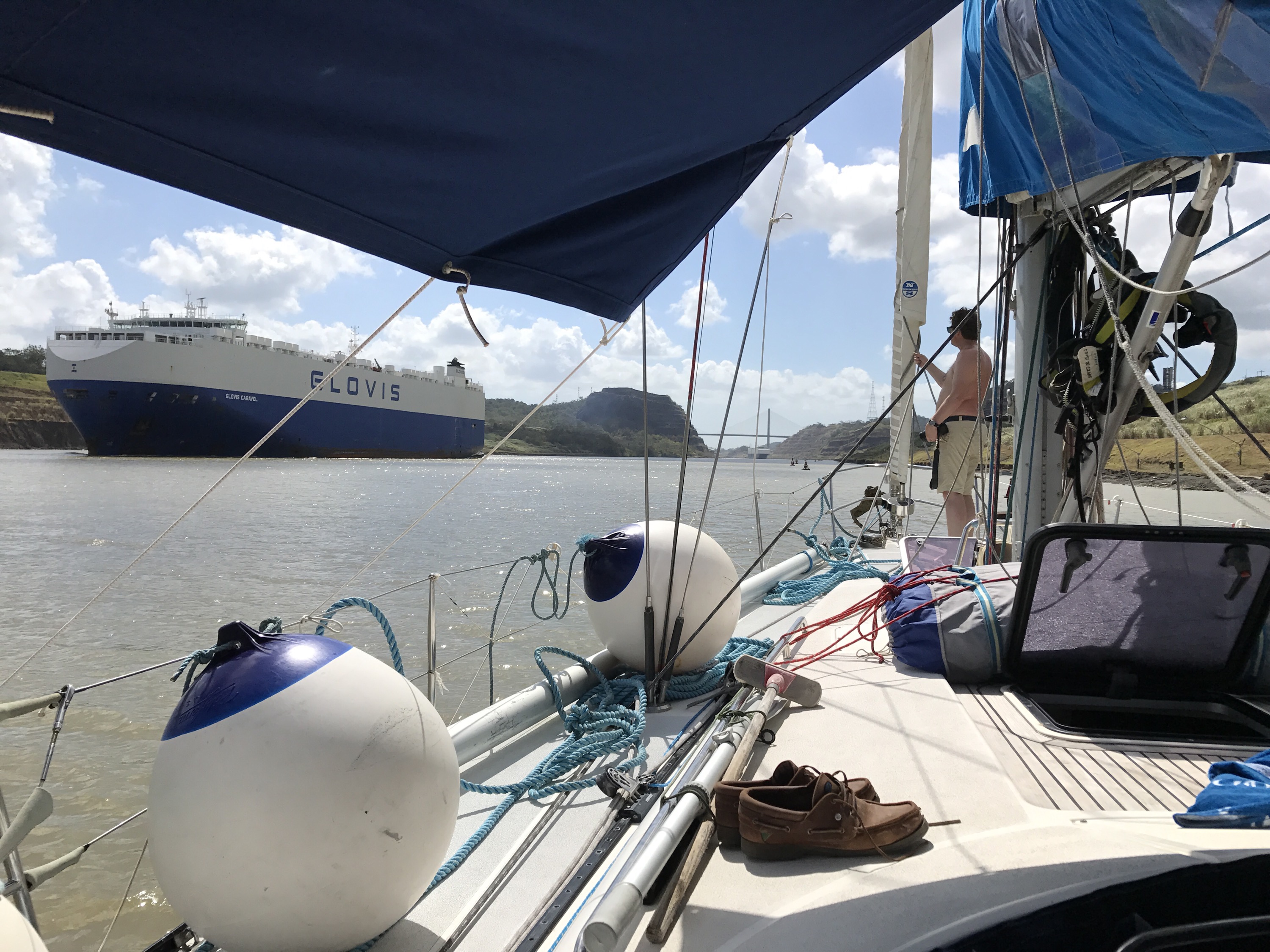 Uitgebreid verslag van Panama transit volgt in NL, hier zijn we 21 meter omhoog gegaan in 3 sluizen. en vafen het Gatun meer op