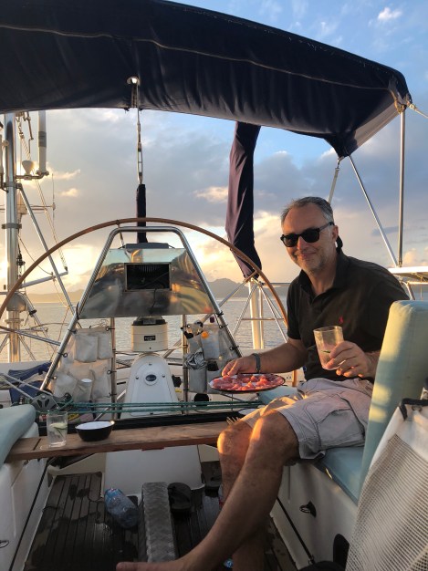 Terwijl ik dit bericht schrijf trekken de wolken weg om ruimte te maken voor een mooie zonsondergang, die wij traditioneel vieren met een ijskoude gin-tonic en een bord verse sashimi (helaas nog niet zelf gevangen)! Vandaag natuurlijk extra speciaal vanwege vaderdag.