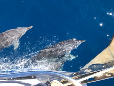 Meerdere dolfijnen zwommen lange tijd met ons mee