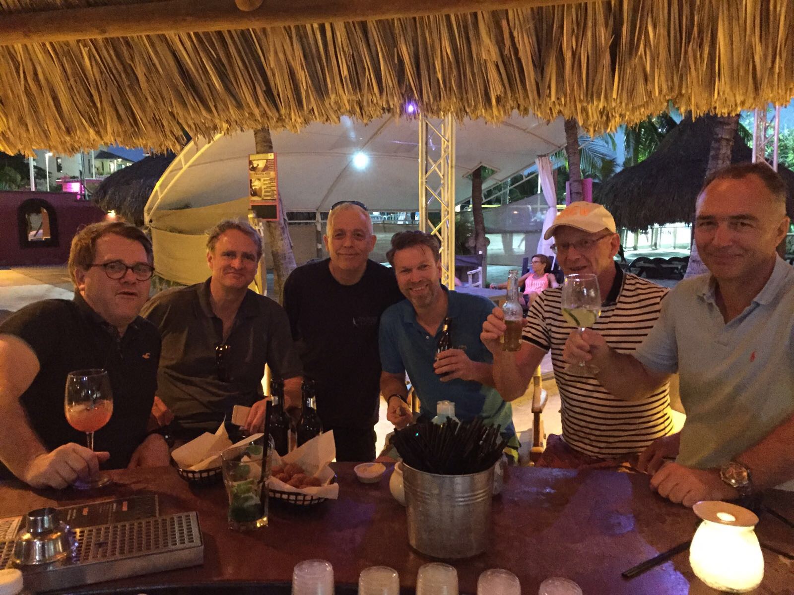 Team Curacao/ Galapagos gearriveerd! Eerst een biertje in Zanzibar. Team 1 is compleet! Zojuis zijn Cees, Frans, George en Jasper geland. Direct naar de Xirene, vervolgens naar de Zanzibar op Papagayo beach! Jan Willem was er al.